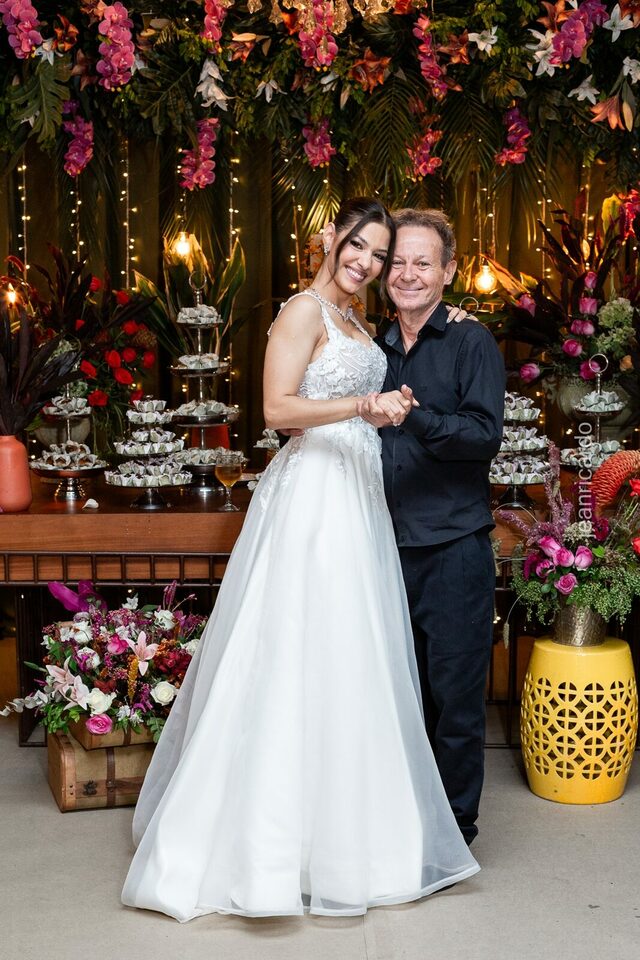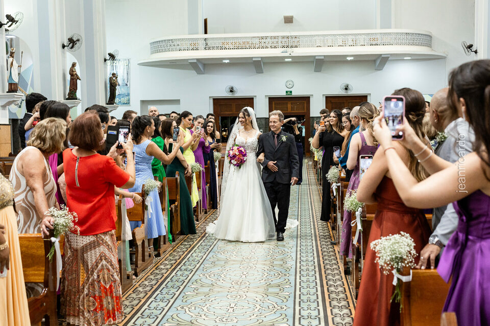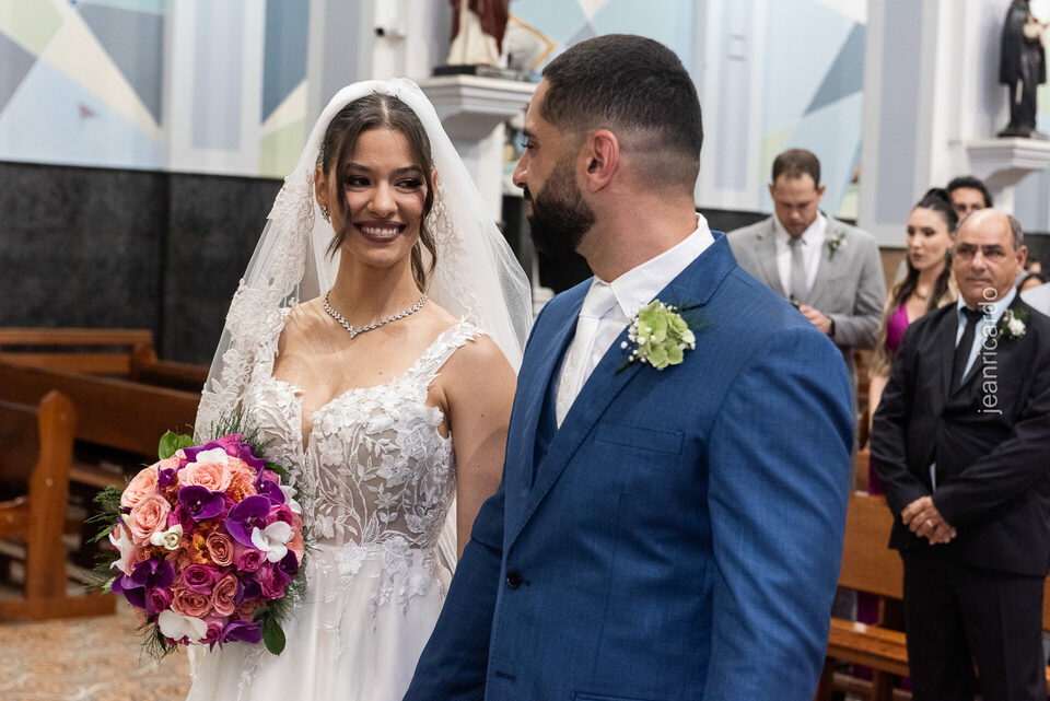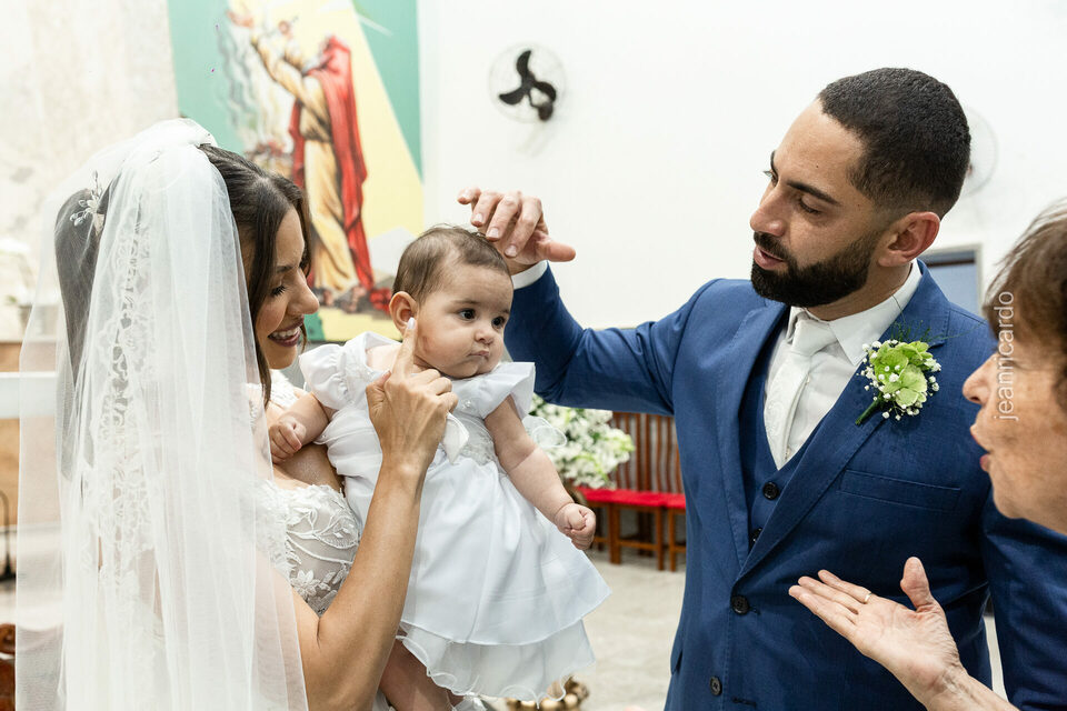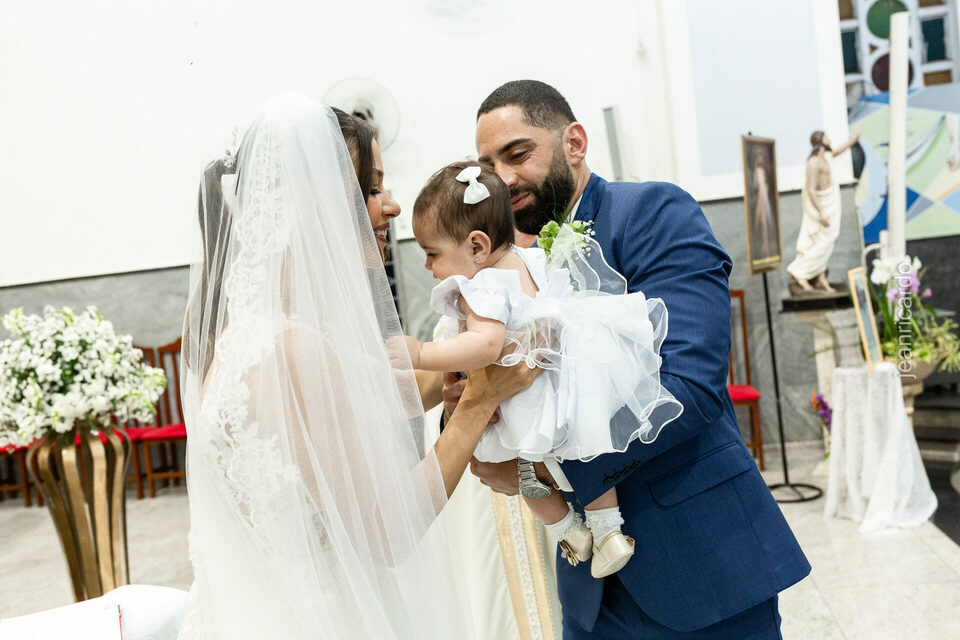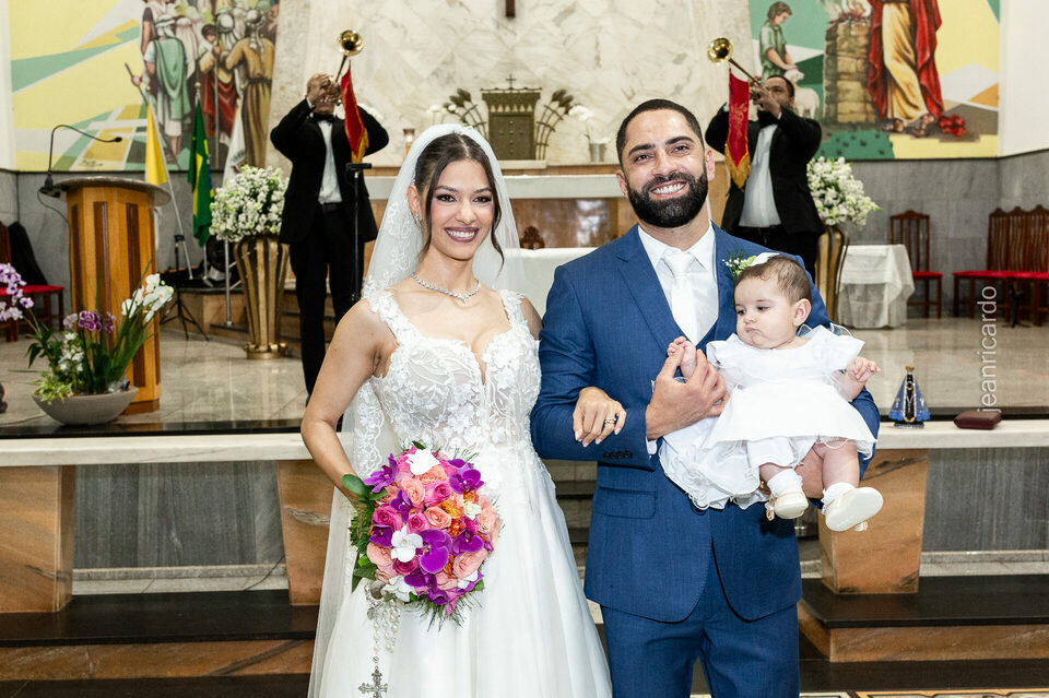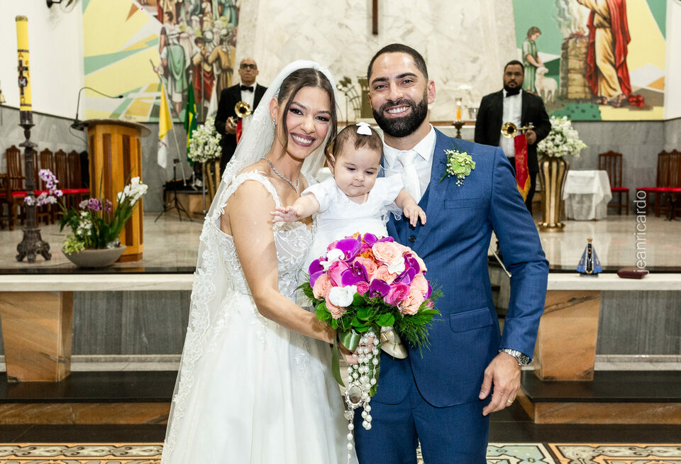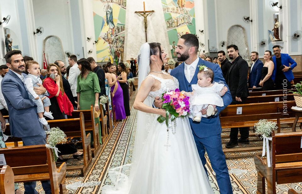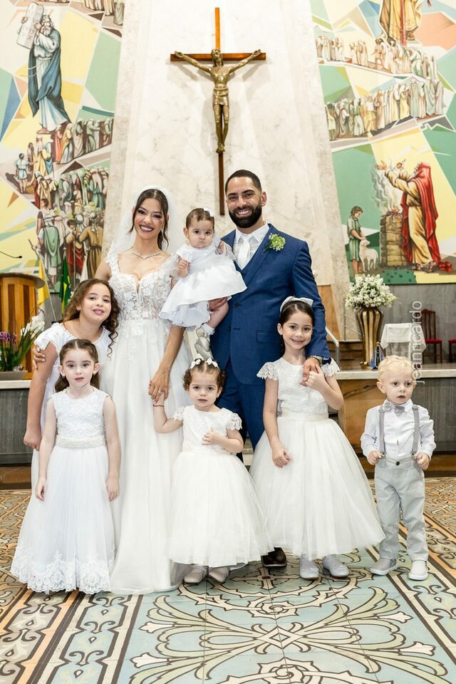 O casamento aconteceu na tradicional Igreja Matriz Santa Rita de Cássia, em Fernandópolis, e reuniu tudo o que torna esse momento único: emoção verdadeira, olhares sinceros, amigos e familiares cheios de afeto, e a presença especial da filhinha do casal, que entrou como daminha em um carrinho e tocou o coração de todos.