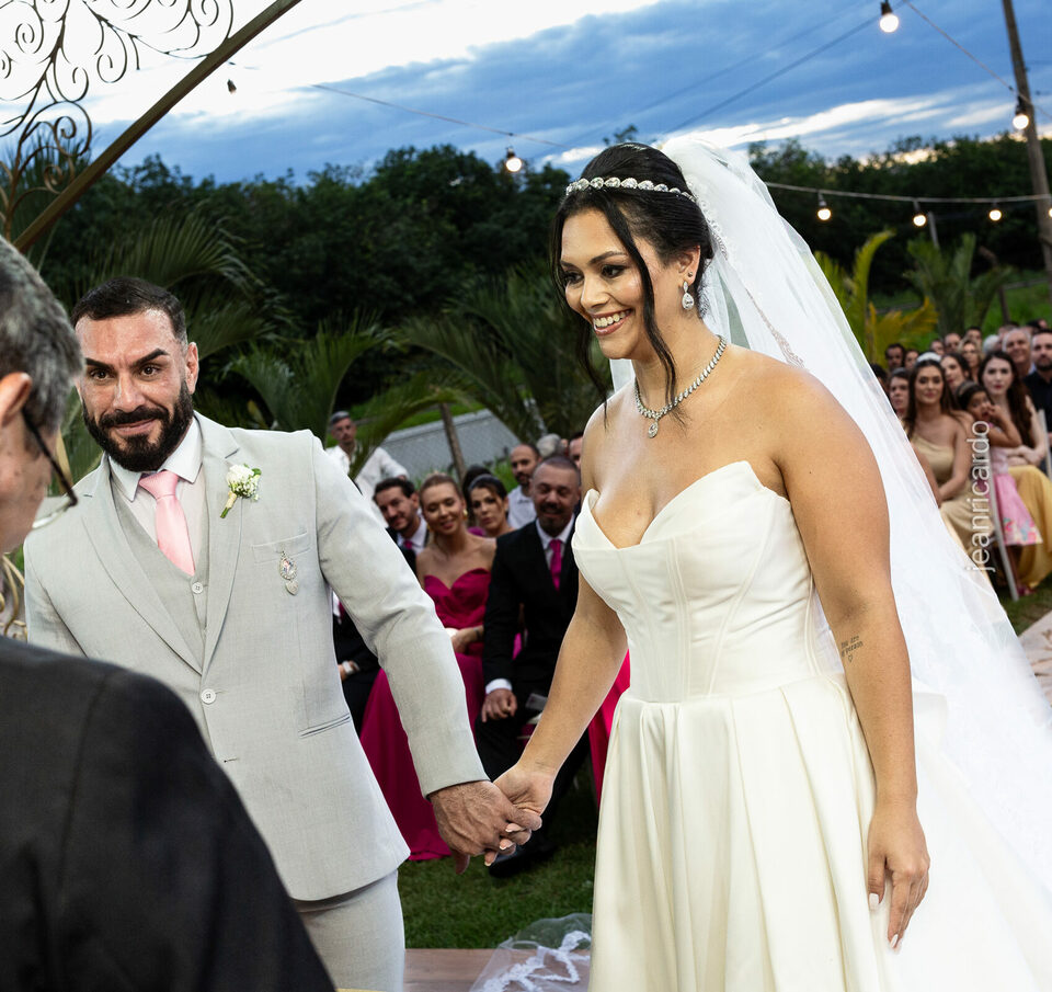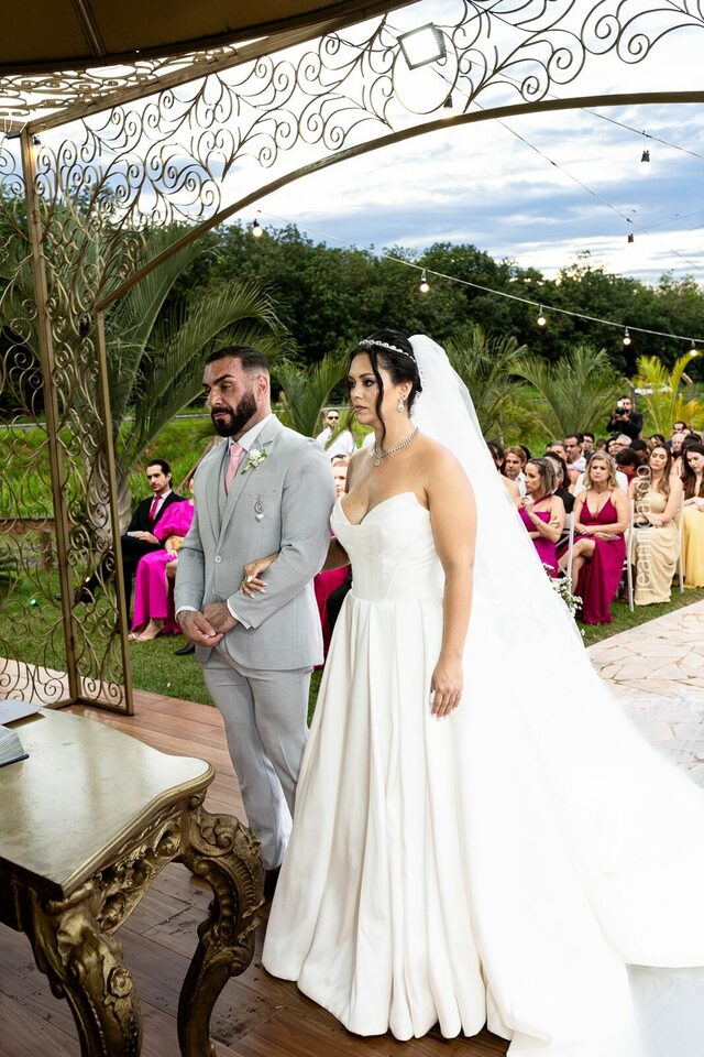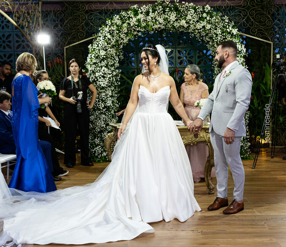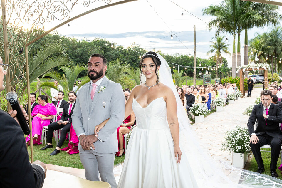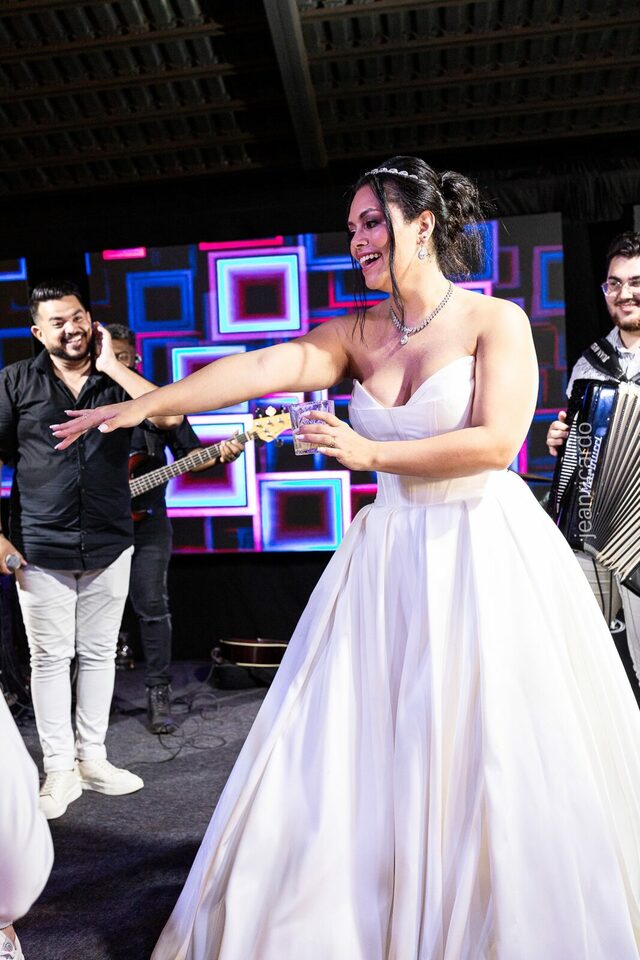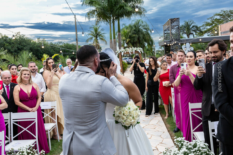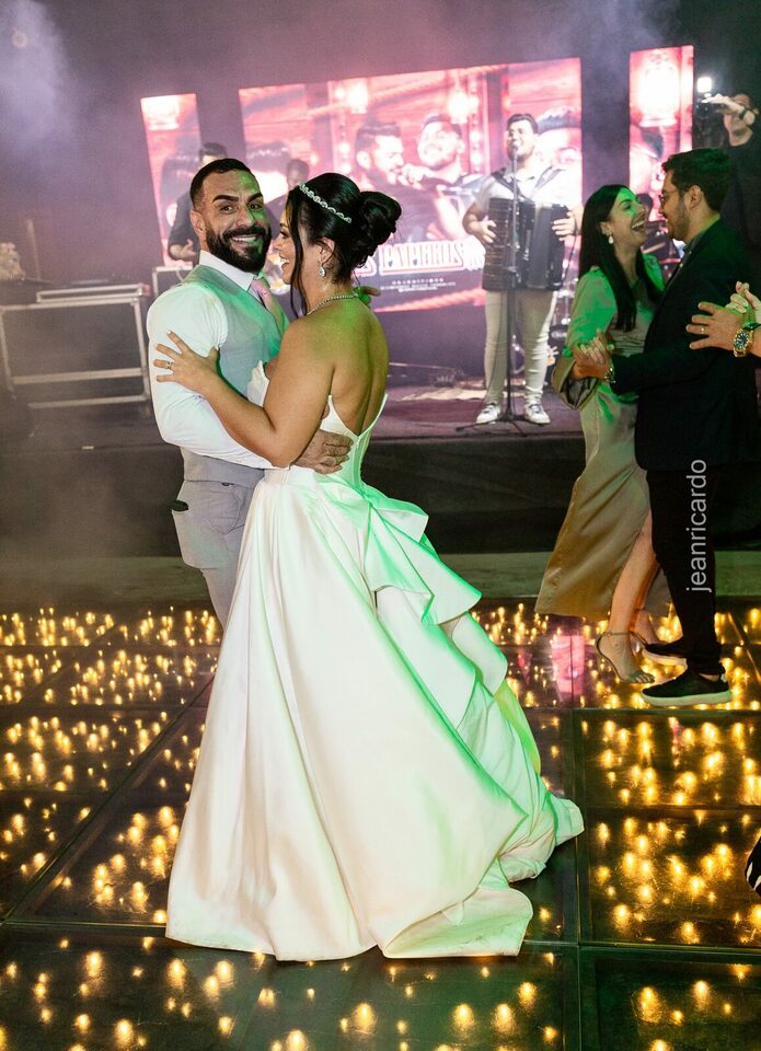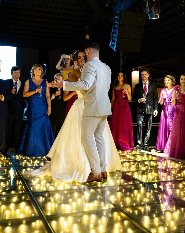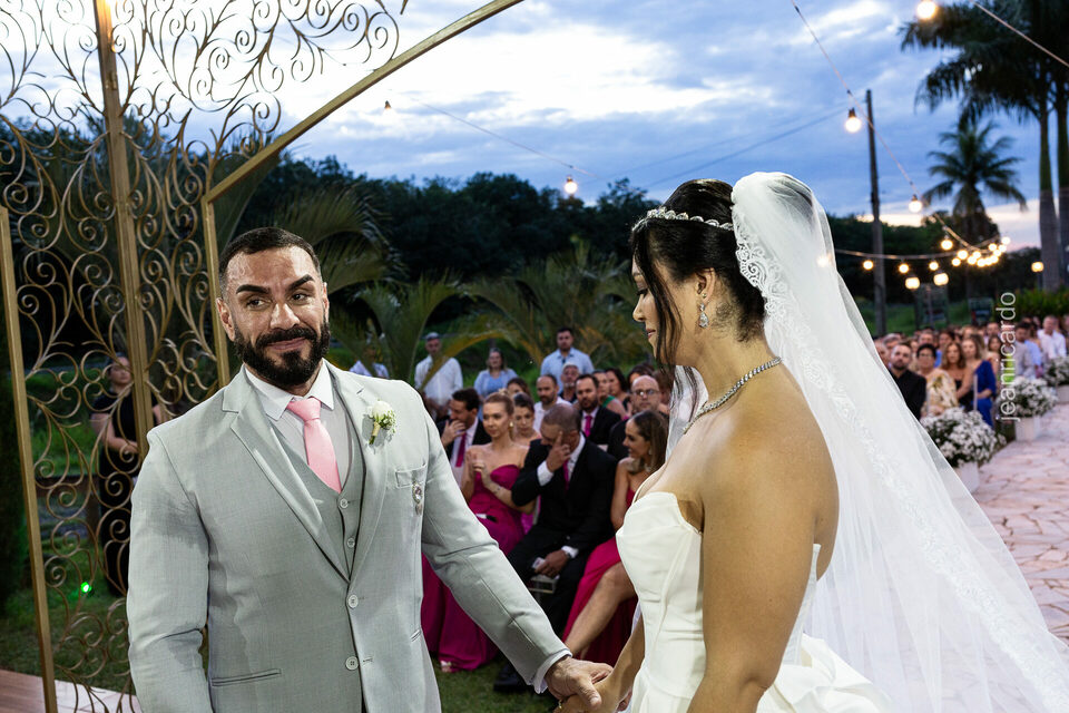 A cerimônia e a recepção foram um verdadeiro encanto, com uma decoração impecável e uma iluminação que deixou tudo ainda mais especial. O brilho nos olhos dos noivos e a alegria contagiante de todos os presentes tornaram esse dia inesquecível!