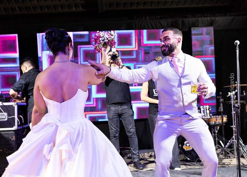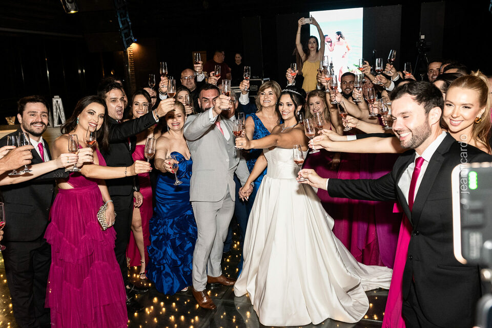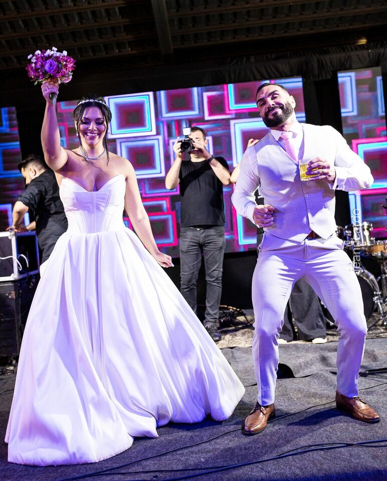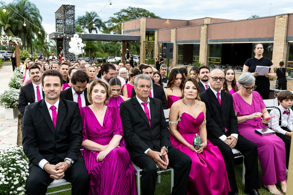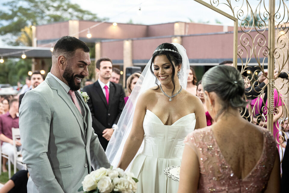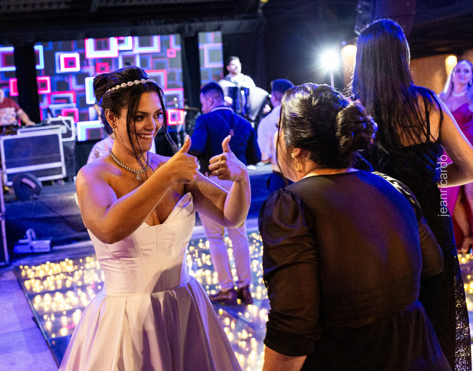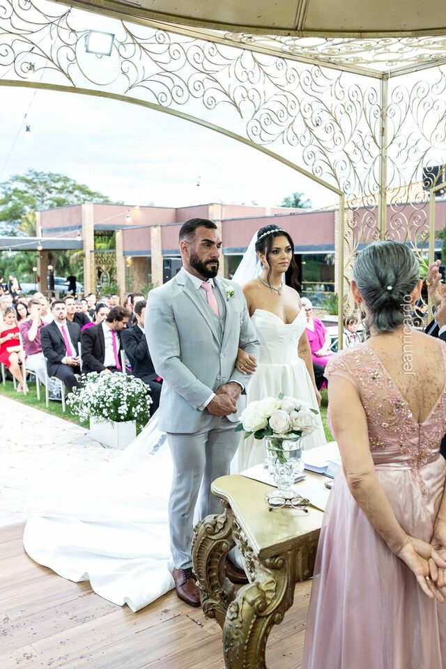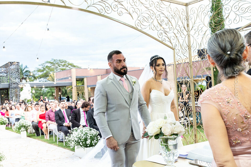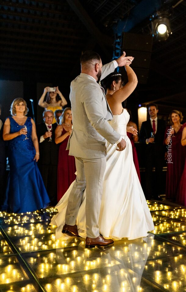 A cerimônia e a recepção foram um verdadeiro encanto, com uma decoração impecável e uma iluminação que deixou tudo ainda mais especial. O brilho nos olhos dos noivos e a alegria contagiante de todos os presentes tornaram esse dia inesquecível!