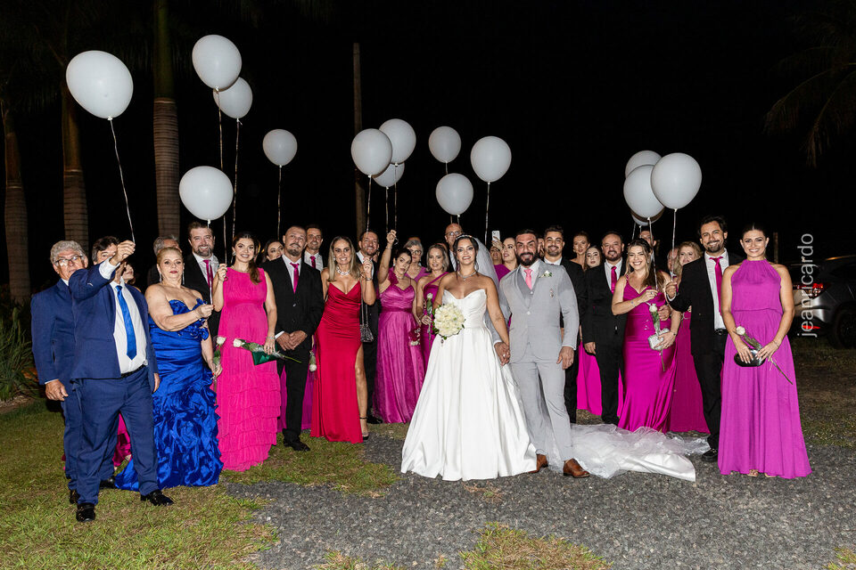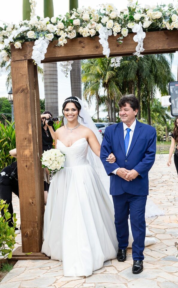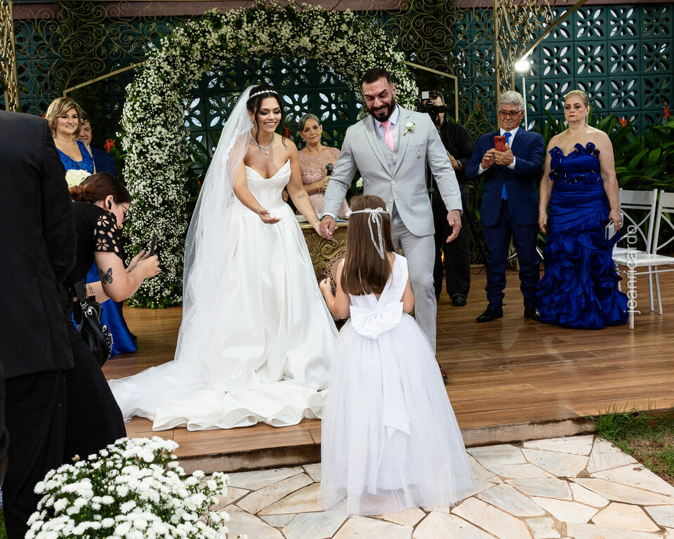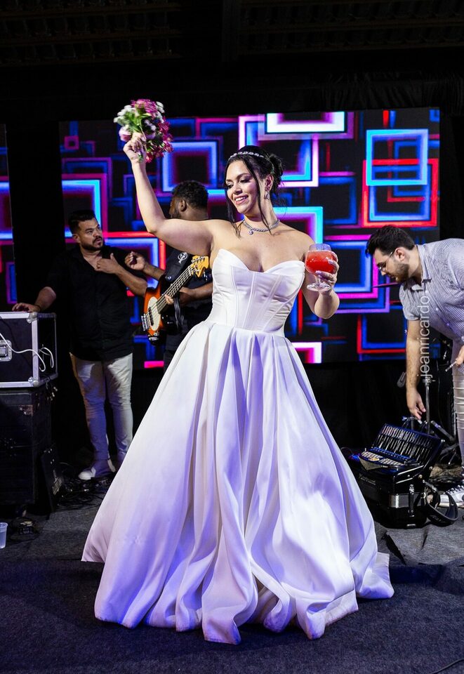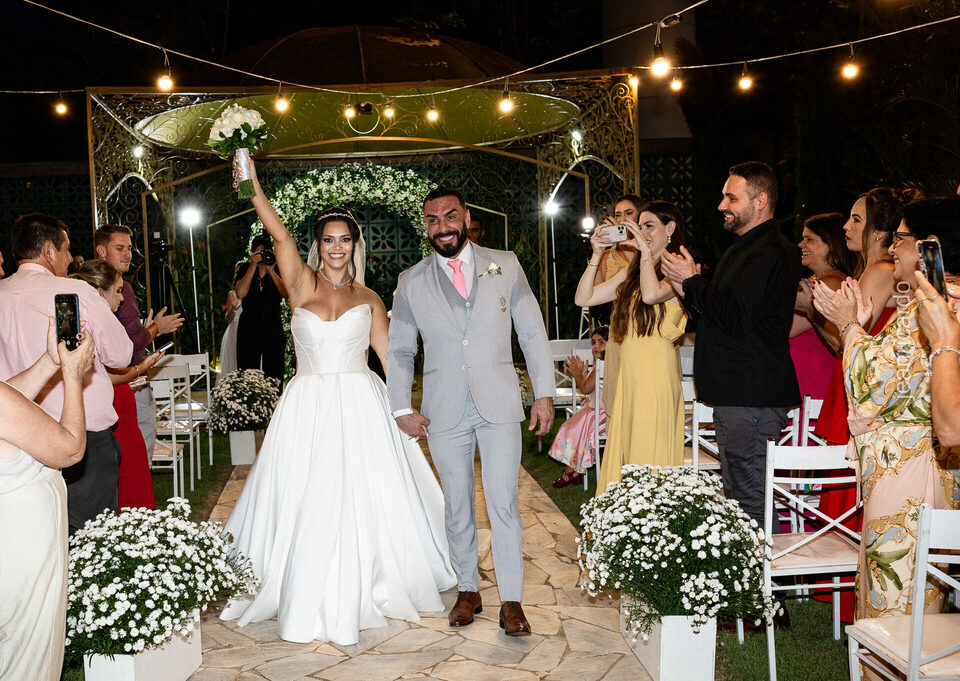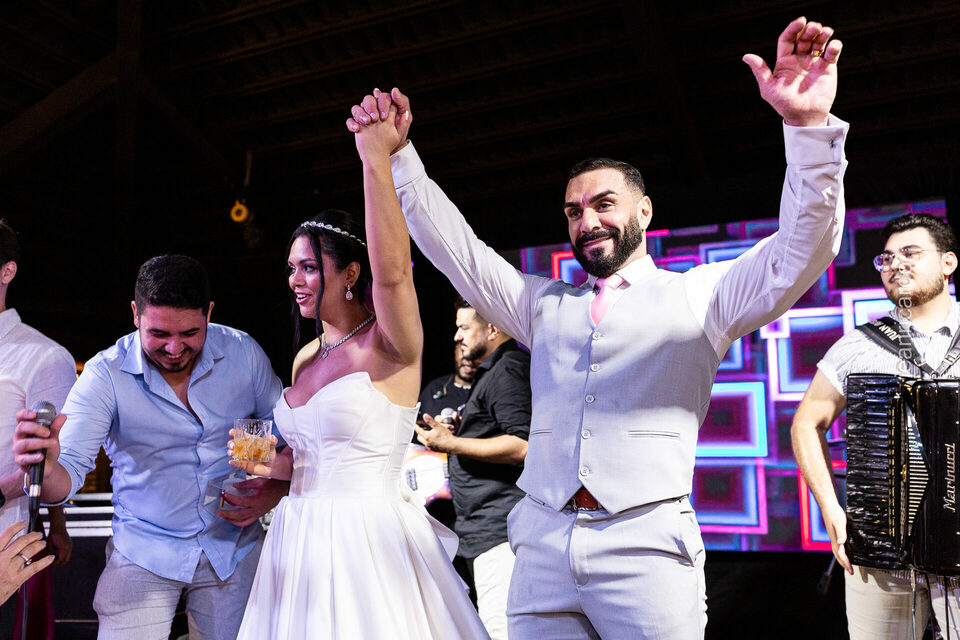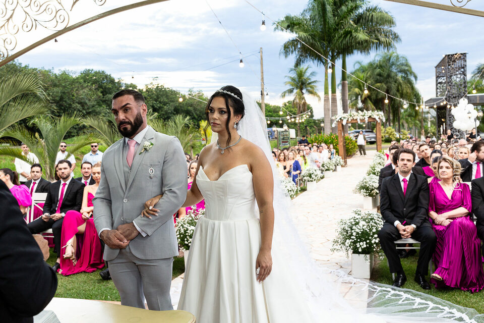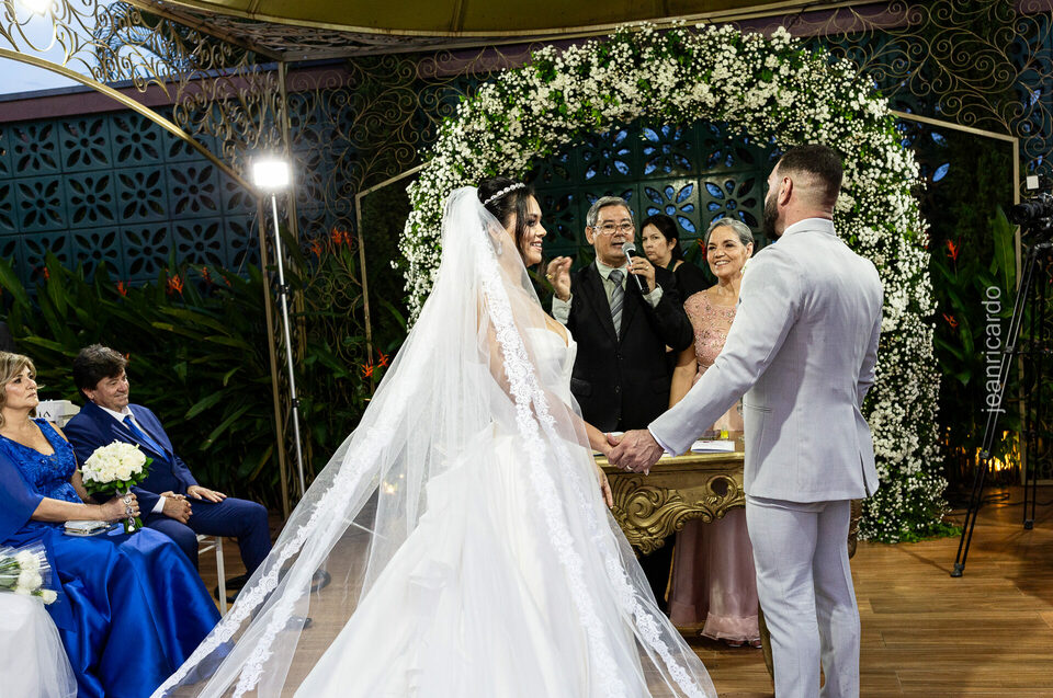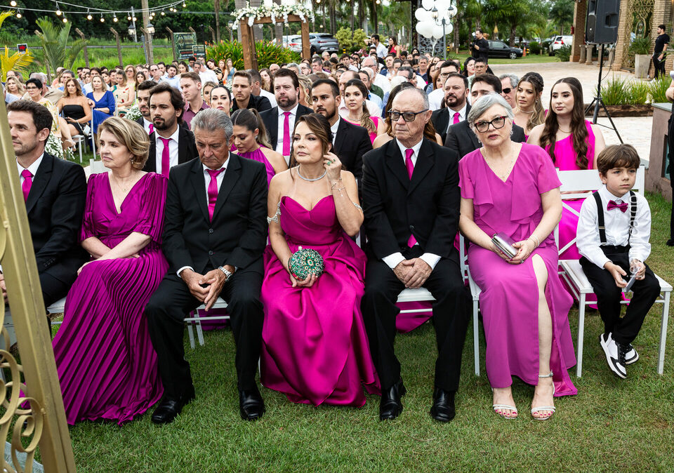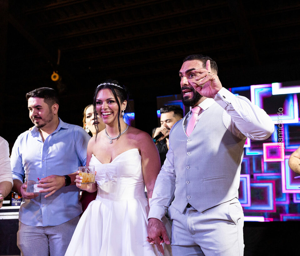 A cerimônia e a recepção foram um verdadeiro encanto, com uma decoração impecável e uma iluminação que deixou tudo ainda mais especial. O brilho nos olhos dos noivos e a alegria contagiante de todos os presentes tornaram esse dia inesquecível!