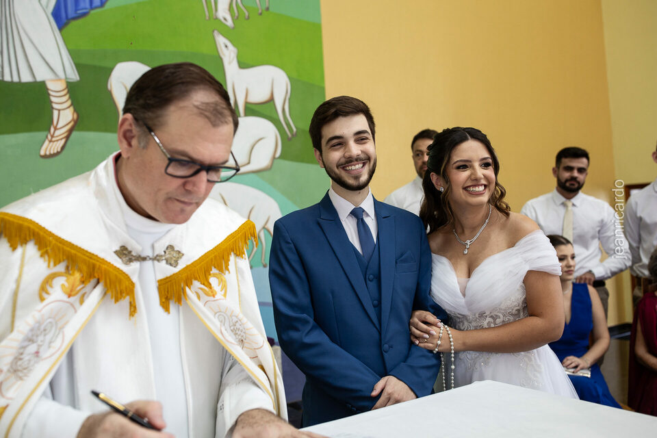A cerimônia foi realizada pela manhã na Paróquia São Bernardo, em Fernandópolis, sob uma luz suave e encantadora. Em seguida, a celebração continuou com um delicioso almoço no Restaurante Barroco, com atrações de música ao vivo que tornaram o dia ainda mais especial.